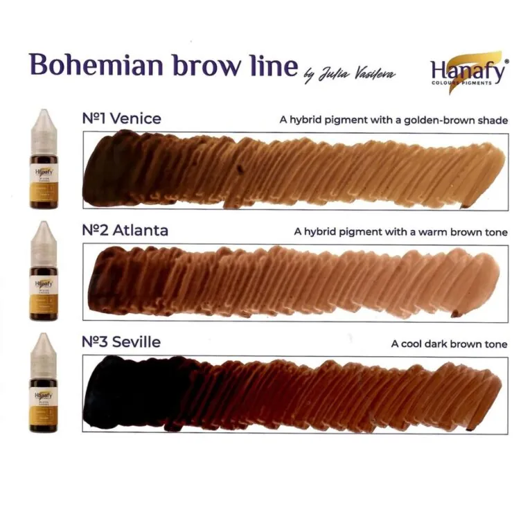 Pigmentul Hanafy Brow №1 Venice by Julia Vasileva (10ml) este o nuanță maro deschis cald, ideală pentru pielea foarte deschisă sau blondă. Oferă un efect natural și luminos, perfect pentru tehnica powder brows și lucrări soft, fără contururi dure. Formula sa echilibrată permite o implantare uniformă, fără pete sau schimbări de ton după vindecare. Rezultatul final: sprâncene fine, delicate și elegante, cu o culoare care rămâne stabilă în timp.